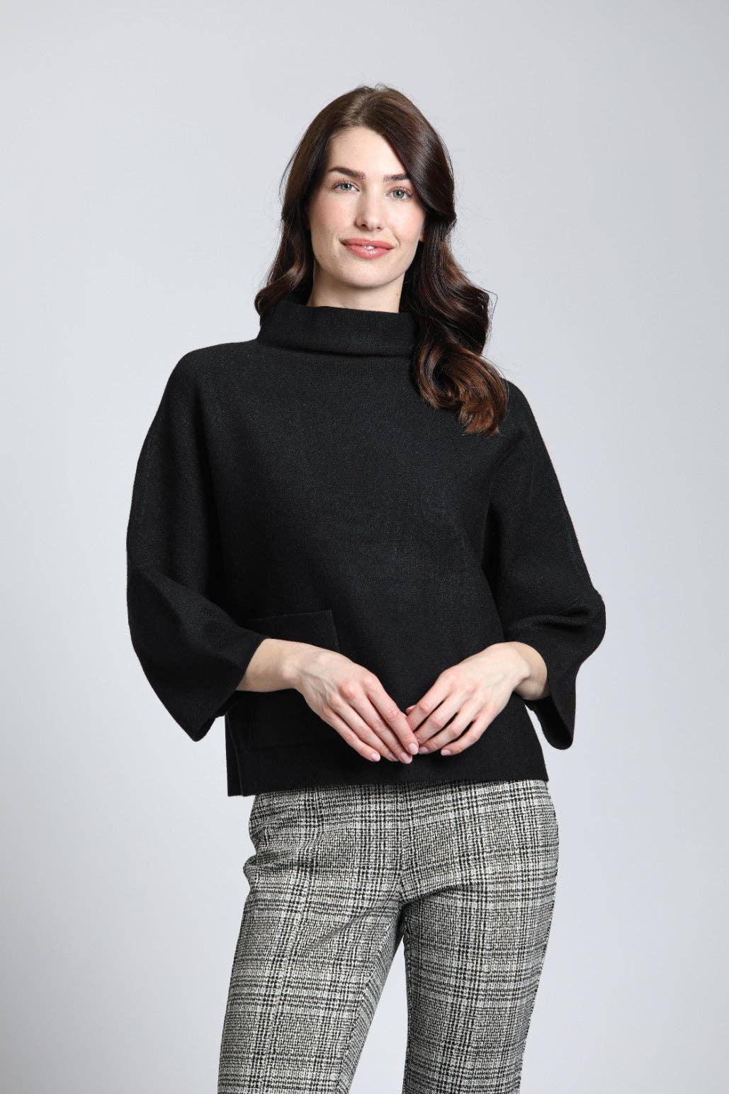 Funnel Neck Sweater With Patch Pocket: BLACK / S