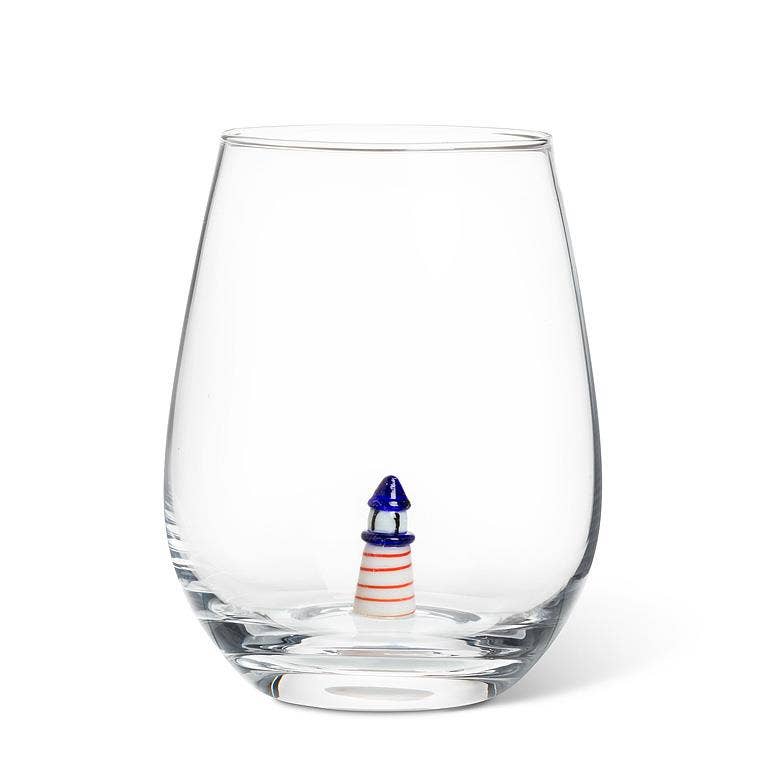 Lighthouse Icon Stemless Wine Glass-4.5"H(20oz)