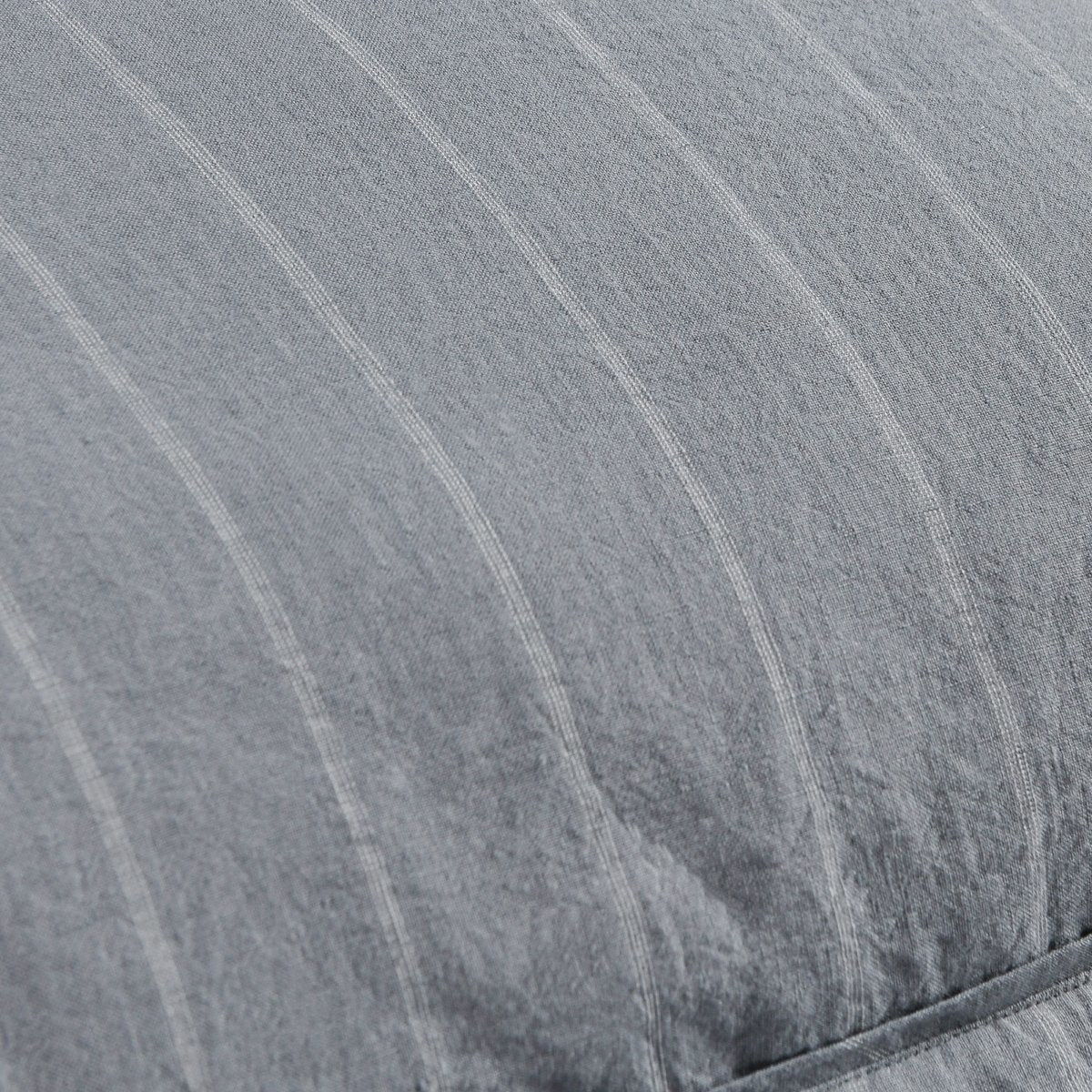 Our Monaco Collection is impressively soft thanks to its Belgian Flax linen fabric and light stonewash finish. The woven pinstripe design introduces an iconic pattern and a dash of color that will compliment the mood of any bedroom. A hidden button closure provides a clean finished look while the corner ties allow for a secure insert without any shifting. Bedding should be washed in cold water with mild detergents that do not contain bleach or other whiteners using a large capacity washing machine. Tumble dry on a low heat seating and remove immediately to avoid wrinkles. Villa Bedding is prewashed before packaging to avoid products from shrinking and stiffening. Our Cotton and Linen products become softer with every wash.