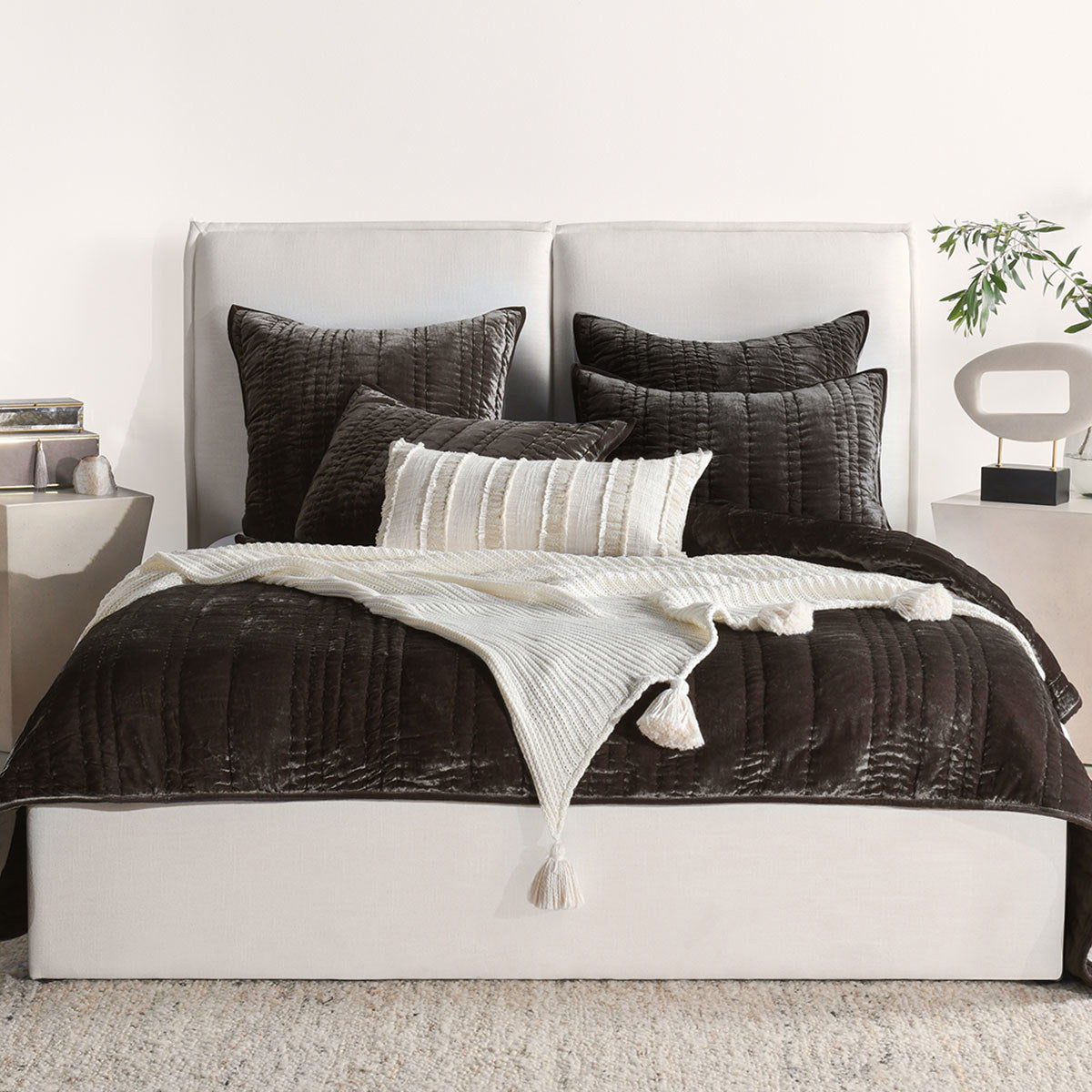 Buttery soft with an alluring shine, this quilt desires to be touched. Indulge into luxury, where this collection brings a touch of glamour to your room. Its texture and dimension along with its rich in color and vertically-quilted design is influenced by heirloom European textiles. Bedding should be washed in cold water with mild detergents that do not contain bleach or other whiteners using a large capacity washing machine. Tumble dry on a low heat seating and remove immediately to avoid wrinkles. Villa Bedding is prewashed before packaging to avoid products from shrinking and stiffening.