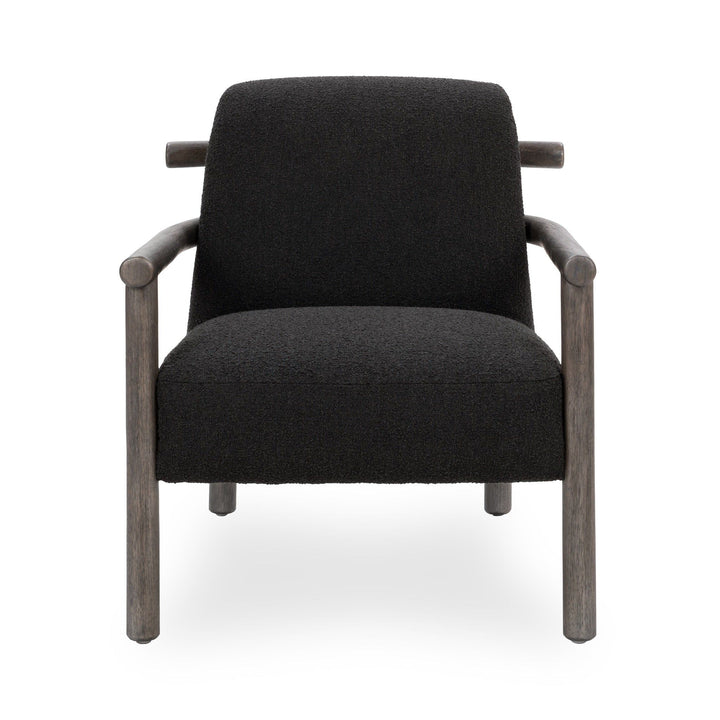 Elevate your space with this accent arm chair upholstered in durable polyester fabric and supported by a solid rubber wood frame. The rounded wood arms and clean lines create a lounge chair ideal as living room furniture, in bedrooms, or home offices. The polyester seat offers comfort, while the rubber wood frame ensures stability. This accent arm chair complements contemporary, Scandinavian, and industrial decor, making it a stylish focal point.