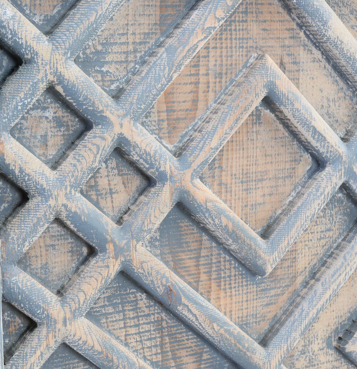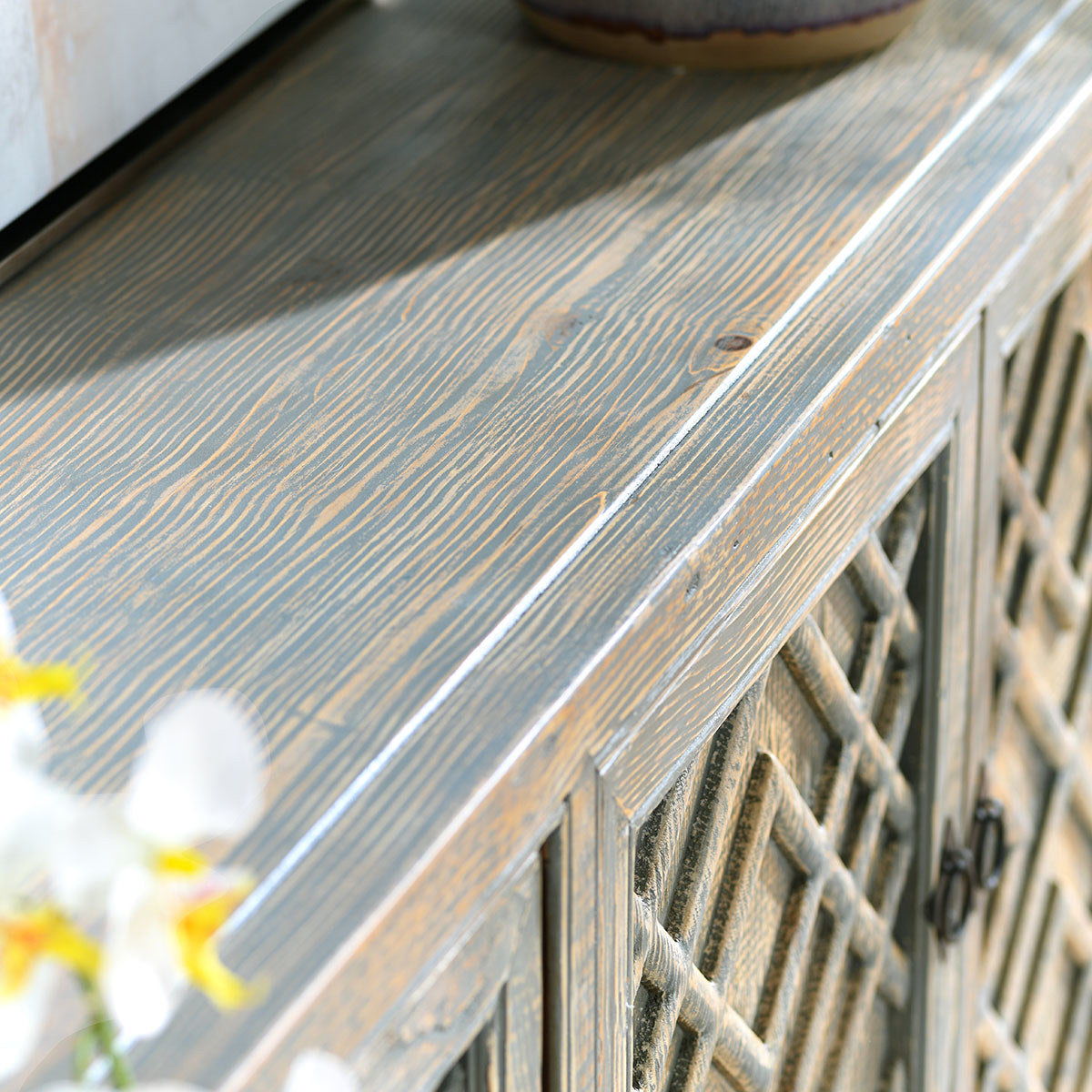 Featuring reclaimed pine with a vintage finish the Antigua 4Dr Sideboard in distressed blue warms living areas with an heirloom feel. Hand finished and hand carved this sideboard is perfect for interiors in need of distinguished pieces with plenty of character.
