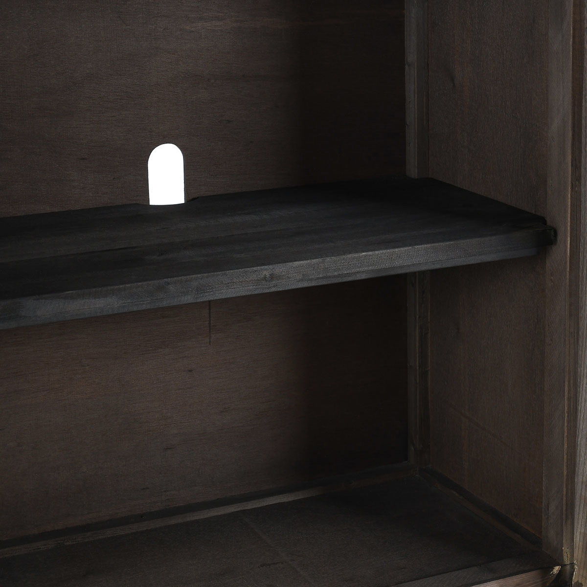 The Landon Cabinet offers sophistication with its reclaimed pine construction and distinctive design. Featuring small antique mirror accents, it adds a touch of vintage allure to any space. This cabinet is perfect for adding an elegant and functional statement piece to your living room, hallway, or dining area.