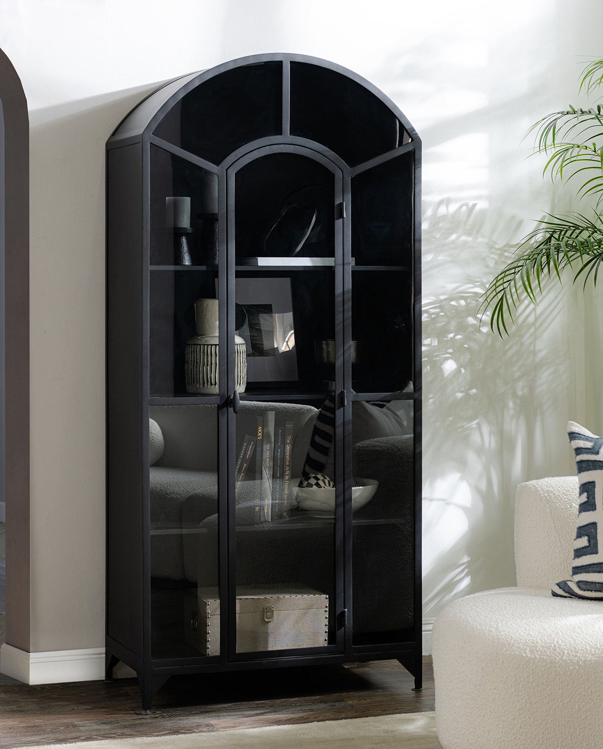 Elevate your space with the Lillo Cabinet, a polished solution for effortless organization. Made from a striking iron frame and tempered glass door, this sleek modern piece masterfully blends industrial strength with minimalist elegance.