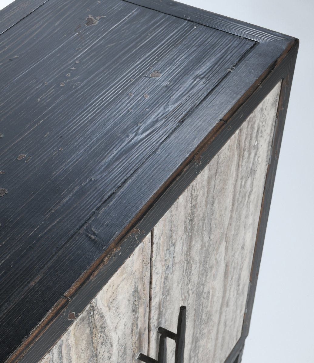 Lisbon - 4 Door Sideboard - Weathered Black/Travertine 76.0"W x 20.0"D x 36.0"H - 252.0 lb