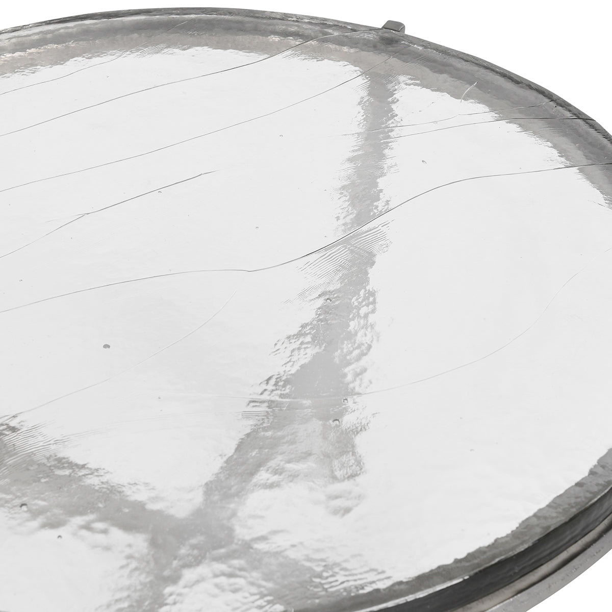 The Patrick Coffee Table features a sleek aluminum frame with a glass top showcasing gorgeous details, complemented by a Zinc Antique finish. This table combines industrial design with elegance, creating a striking centerpiece for any living space. Its durable construction and intricate glass top details make it both functional and stylish.