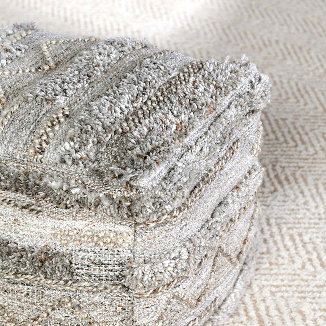 Reminiscent of a traditional hand-knit sweater, this pouf brings a nostalgic, cozy appeal to both Indoor and outdoor spaces. Recycled plastic bottles create the yarns used for this pouf, combining a classic sensibility with modern sustainability.