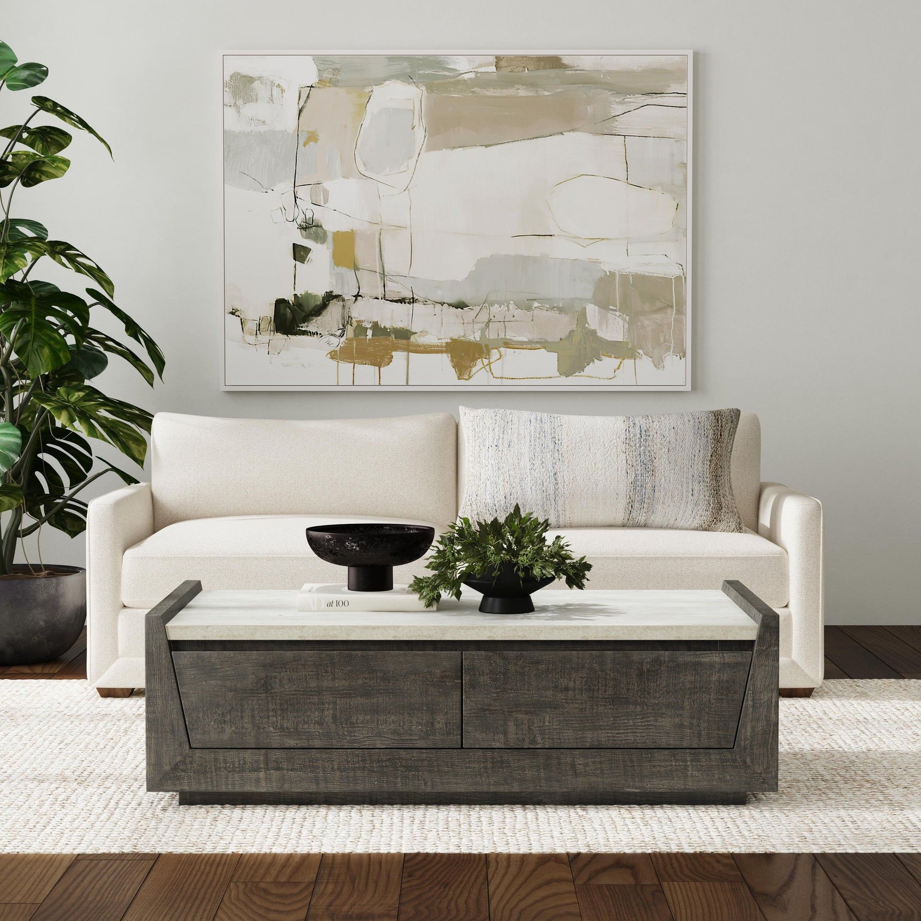 The Tori Coffee Table is crafted from FSC® Certified reclaimed pine with a concrete laminate top, offering a beautiful mixture of designs. Its sturdy construction and strong, defined shape ensure lasting durability while adding a touch of modern appeal. The combination of natural wood and sleek laminate creates a striking piece, perfect for enhancing any living space with both style and strength.