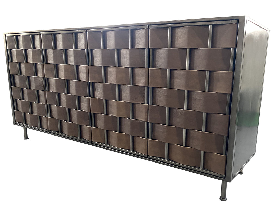 Komo - Leather/Metal 4 Doors Cabinet - Dark Brown