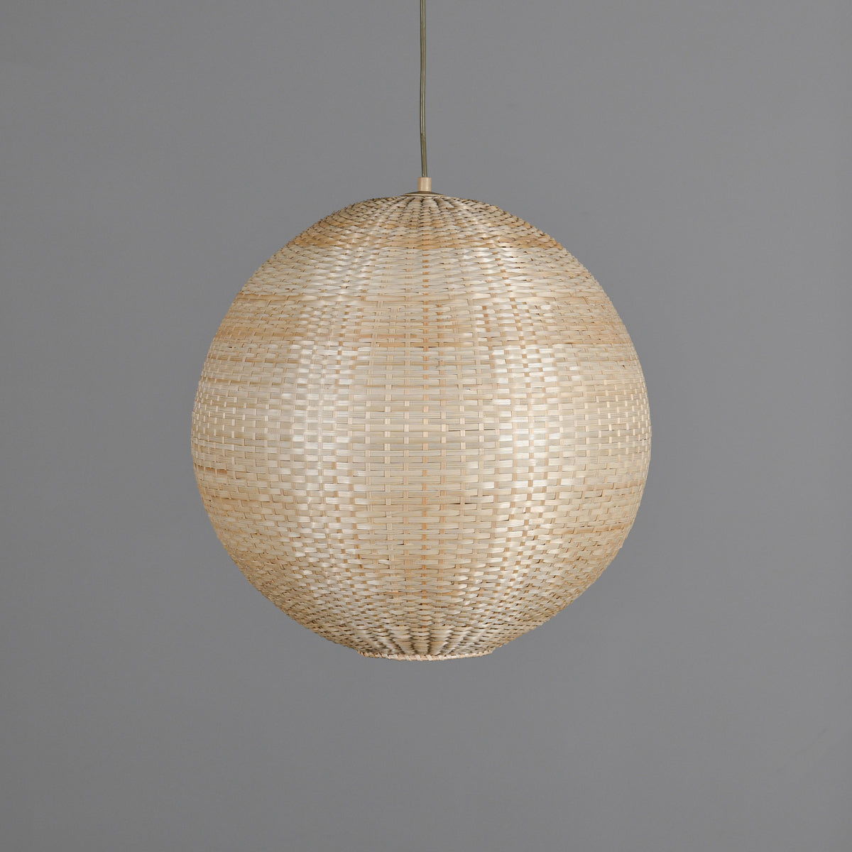 The Cayman Pendant in small or medium balances bamboo accents with a sturdy iron frame, offering an organic yet structured look. Its natural materials diffuse light beautifully, creating a warm and earthy glow. A statement piece that blends nature-inspired charm with timeless design.