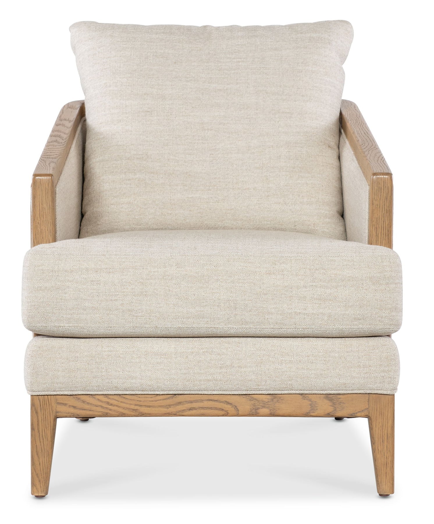 The Enveyed Stationary Chair offers a casual and organic aesthetic with a decorative oak frame finished in Cashew. Upholstered in durable Classic Linen performance fabric, it provides a blend of comfort and style, perfect for modern living rooms. Featuring a high-density foam core wrapped in virgin polyester fibers, this chair ensures luxurious seating while maintaining its sleek, biophilic design. Ideal for interior designers and homeowners looking to incorporate natural elements into their decor.