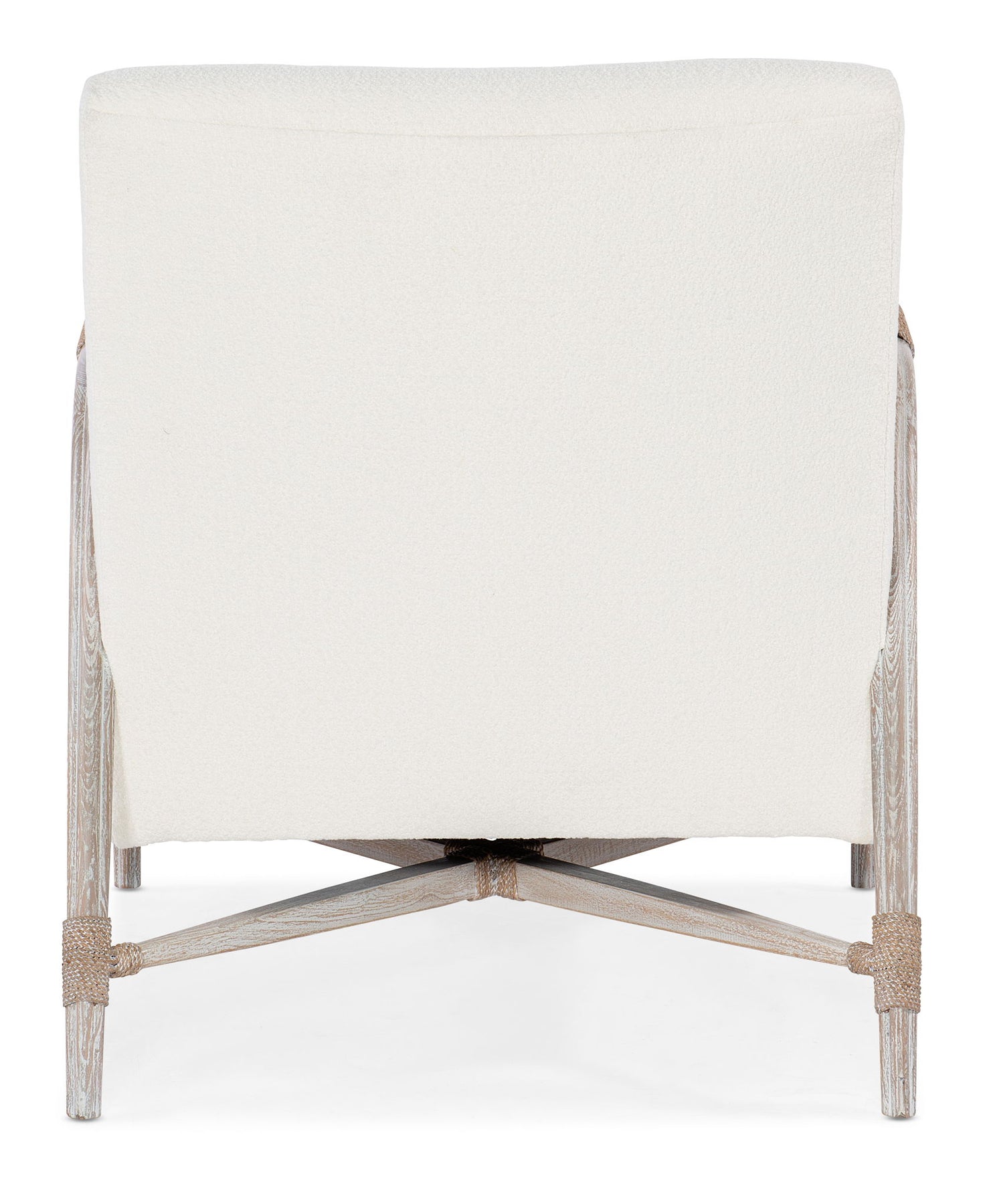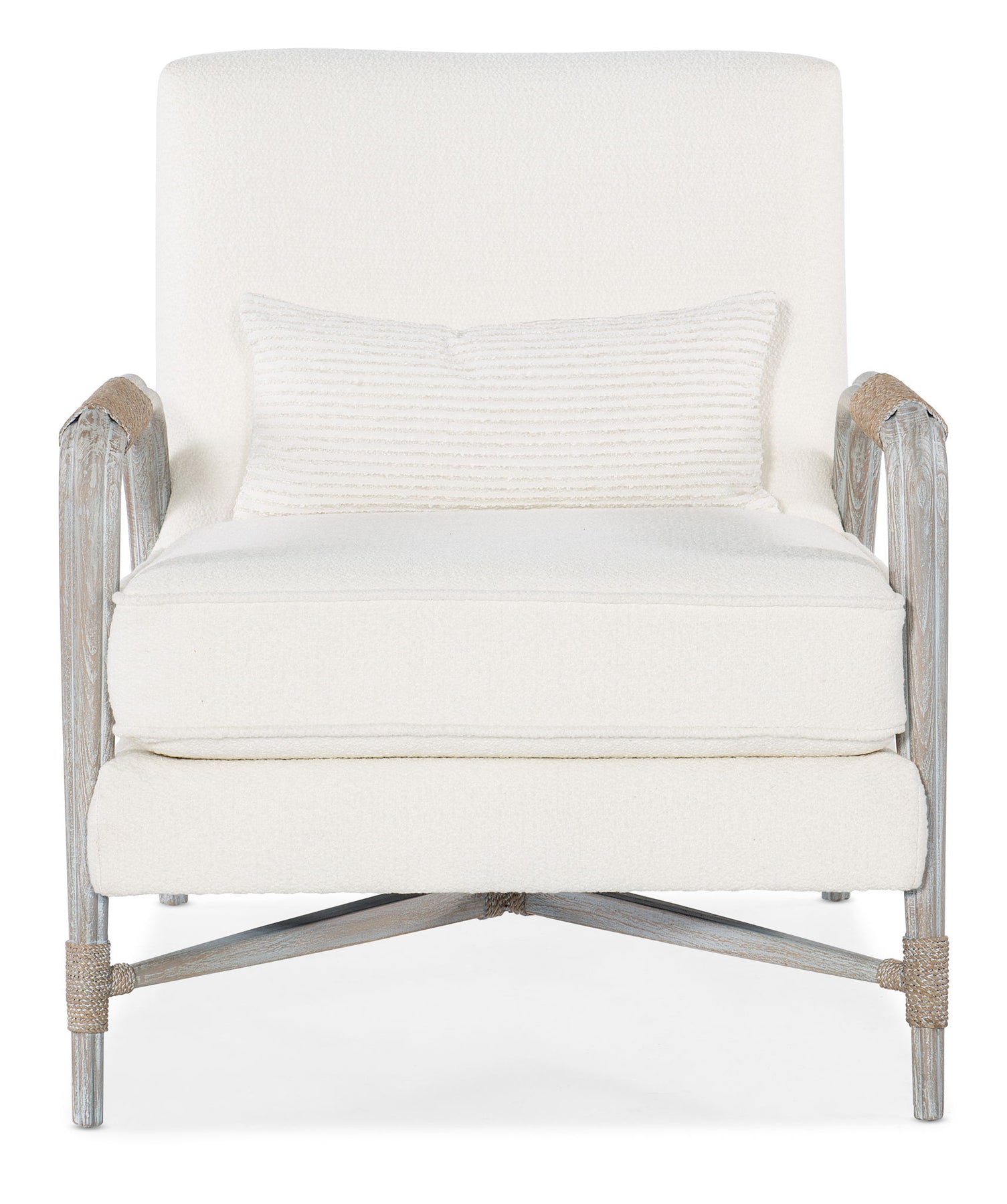 With a mid-century modern retro vibe updated for today, the Isla Lounge Chair has a tight back and loose seat cushion upholstered in the Macrame Artic fabric. The light wood finished arms and legs are accented by rope wrapping on the arms.