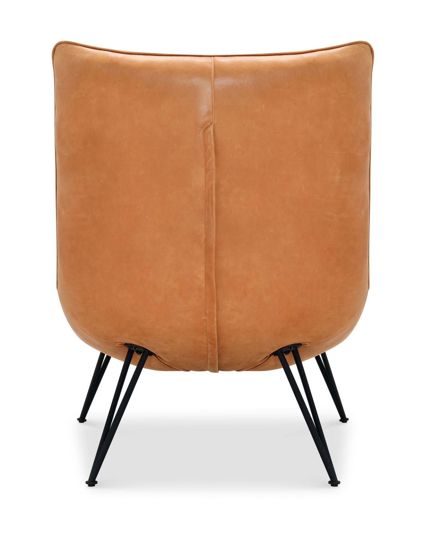 Modern luxury meets tailored comfort in the Kayne Accent Chair, upholstered in rich Saddlebag Coin aniline leather. With a tufted seat and back, sleek armless silhouette, and black metal spindle legs, this contemporary club chair delivers a minimalist profile with designer impact. Ideal for bold interiors that embrace form and texture.