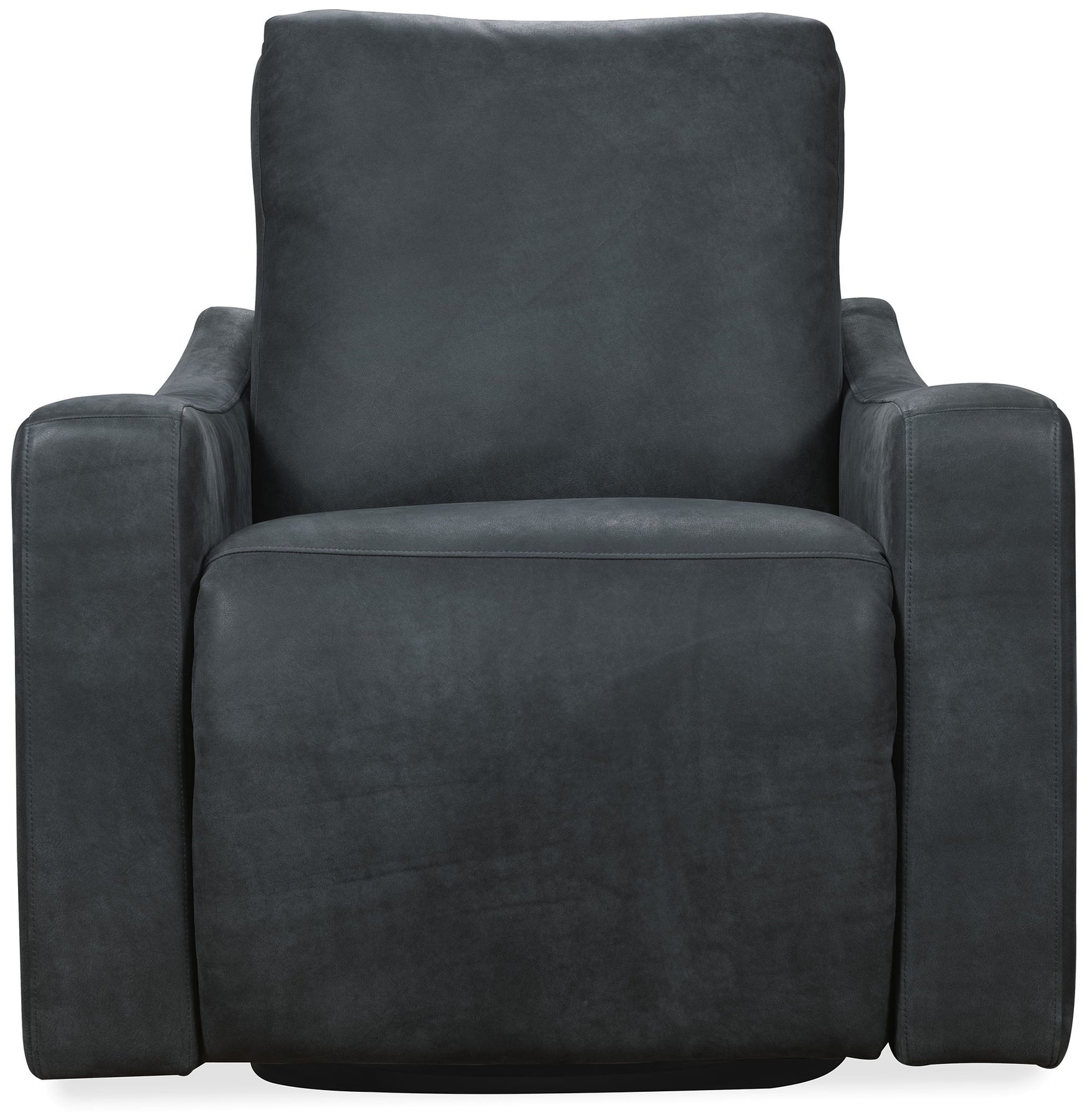 Sleek and stylish, the Lewis Power Swivel Recliner offers smooth 360-degree motion with luxurious black Cordoba Noir leather. Designed with a sloped track arm and power reclining function, this chair combines flexibility and form—perfect for open concept layouts or statement seating in modern spaces.