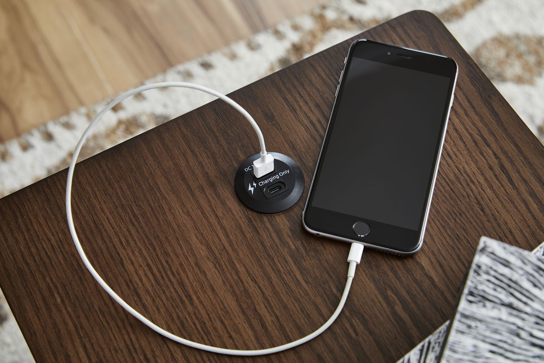 This chairside end table elevates your living room with both sleek style and must-have modern function. Reeded detailing lends a contemporary appeal, while subtly integrated drawers stow essentials with ease. USB ports round out the design, allowing you to keep devices within reach while charging.