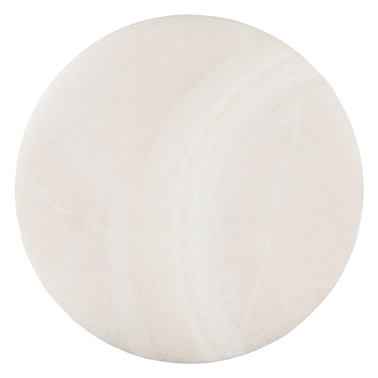 Add a touch of elegance to your living room with the Je Suis Petit Spot Table from the Melange collection. This round accent table features a textured gold metal frame paired with a luxurious onyx stone top, creating a sophisticated and timeless design. Perfect as a side table or decorative accent, its compact size makes it a versatile addition to any space.