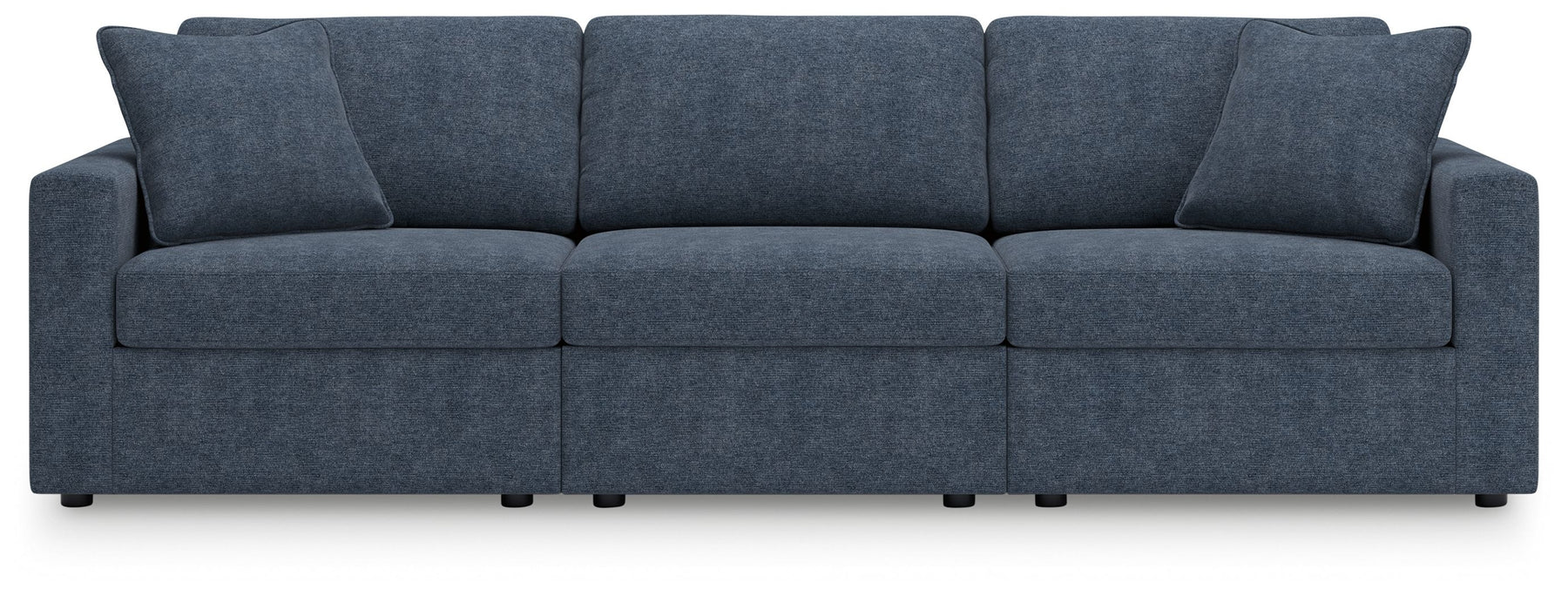 Includes 3 modular pieces: left-arm facing corner chair, armless chair and right-arm facing corner chair