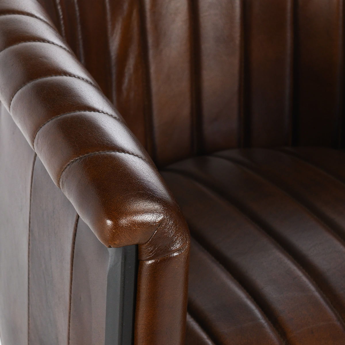 The Seville Bar Stool features top grain leather with iron legs, showcasing vertical channeling for added texture and style. Its design creates a rich atmosphere, making it a perfect addition to any classic environment. The combination of premium materials and timeless design ensures both comfort and elegance for your bar or counter space.