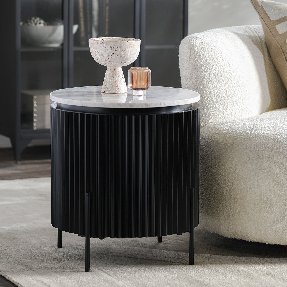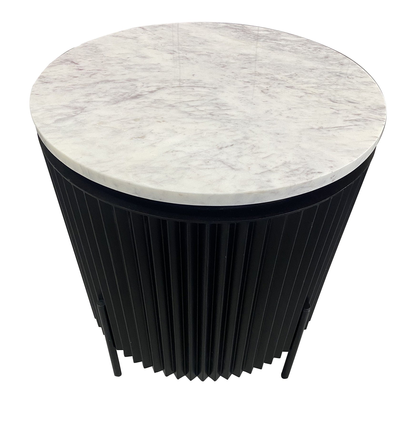 Gage - Marble/Metal 20" Round End Table - Black/White 20.0"W x 20.0"D x 22.0"H - 47.52 lb