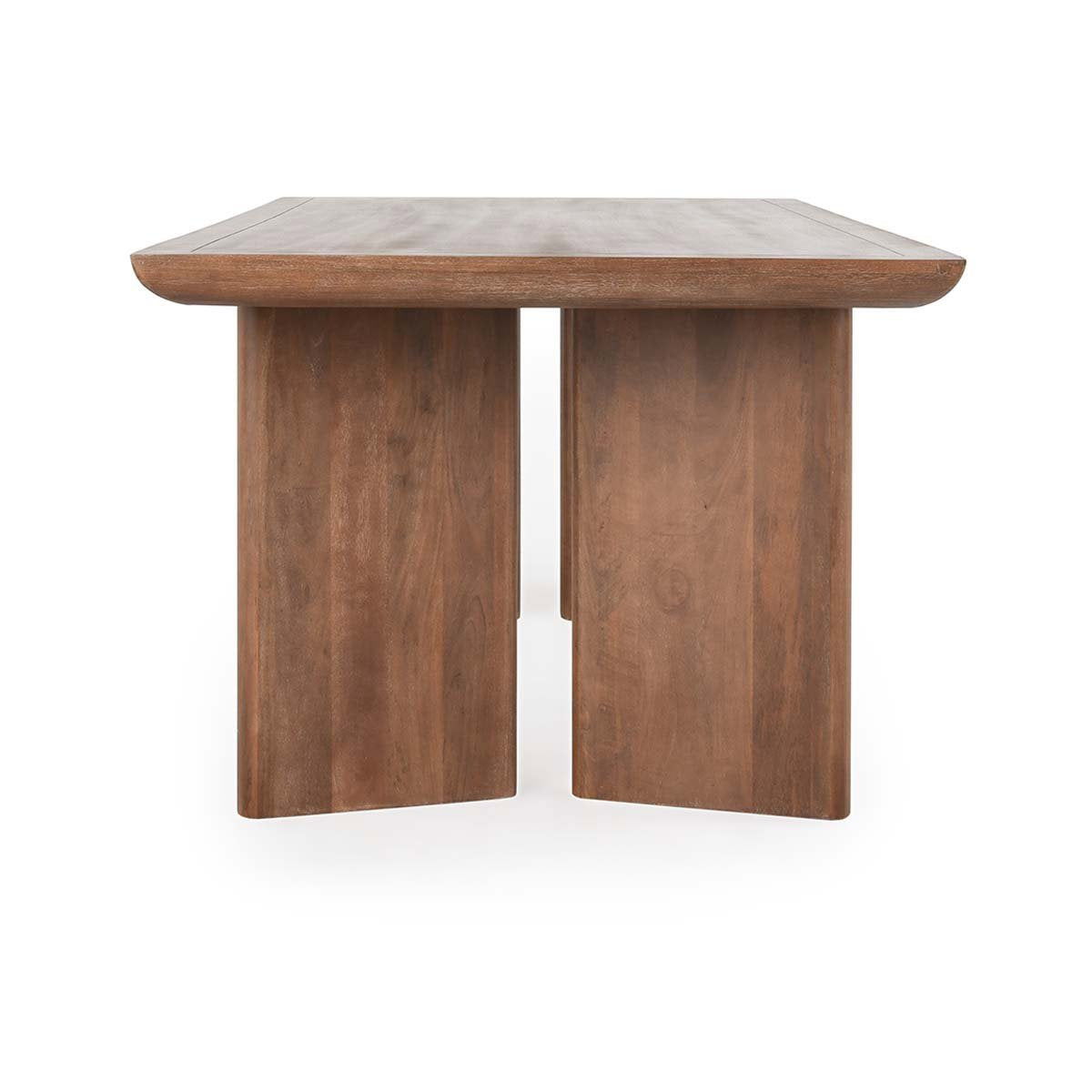 The Selena Dining Room Set, crafted from mango wood, features soft curved edges and a smooth, seamless aesthetic. Its natural wood finish creates a warm, inviting atmosphere, making it the perfect addition to both modern and classic dining spaces. The set offers a sophisticated yet comfortable setting for family gatherings and meals.