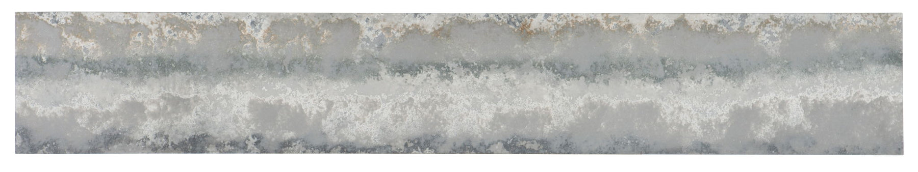 Inspired by the Italian coastline of the Adriatic Sea, classical design is made new in the Lapilli Console Table combining a metal base shaped with airy geometric motifs and an organic stone veneer top. The base is finished in a metallic silver tone with distressing texture applied for tactile appeal.