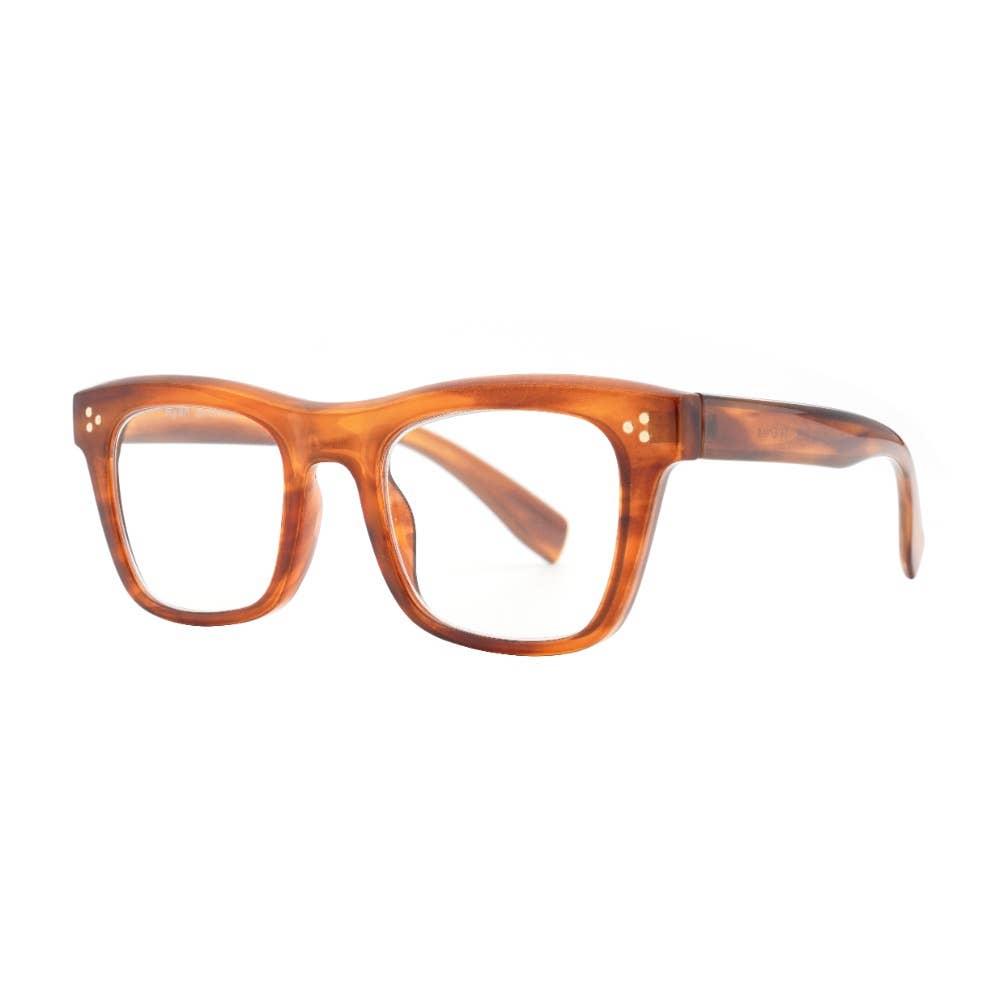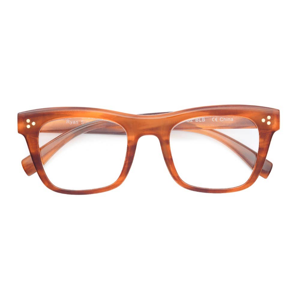 Blue Light Blocking: reduces eye fatigue, filtering out blue light from all the screen time our eyes receive each day; clear lenses Premium Polycarbonate: technology that provides a sturdier frame Anti-Scratch Aspheric Lenses: keeps lenses scratch resistant, thinner and light weight Sizing: Frame width: Lens Width: Lens Height: Bridge: Temple: Available in 2 Colors: Black | Tortoise Temples | Blue Light Striped Brown ALICE | R-7093-C2-BLB Striped Light Brown | Blue Light