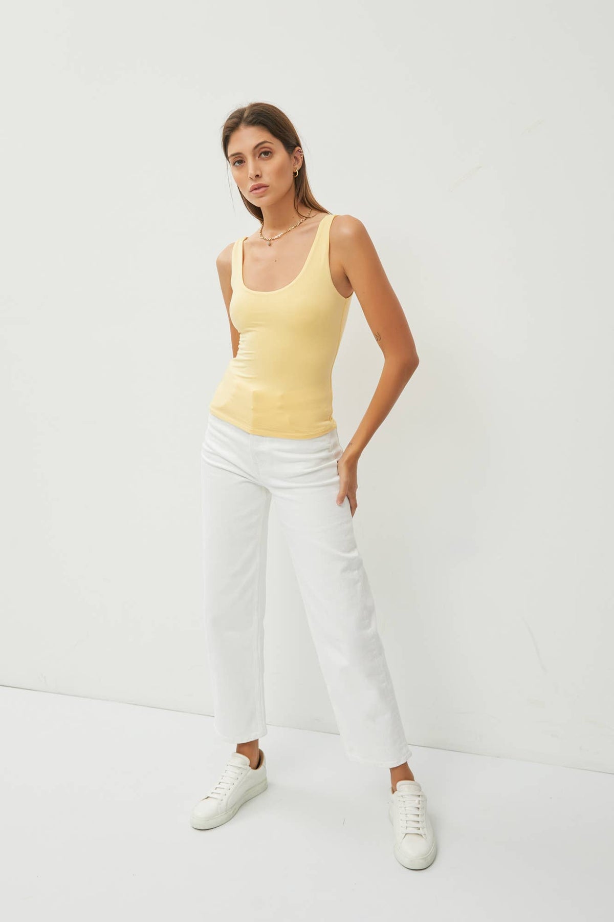 SOFT & STRETCHY JERSEY TANK MADE WITH SCOOP NECK. MADE OF A SPANDEX MIX MATERIAL TO COMFORTABLE FIT THE BODY. DOUBLE LINED FOR EXTRA SECURITY