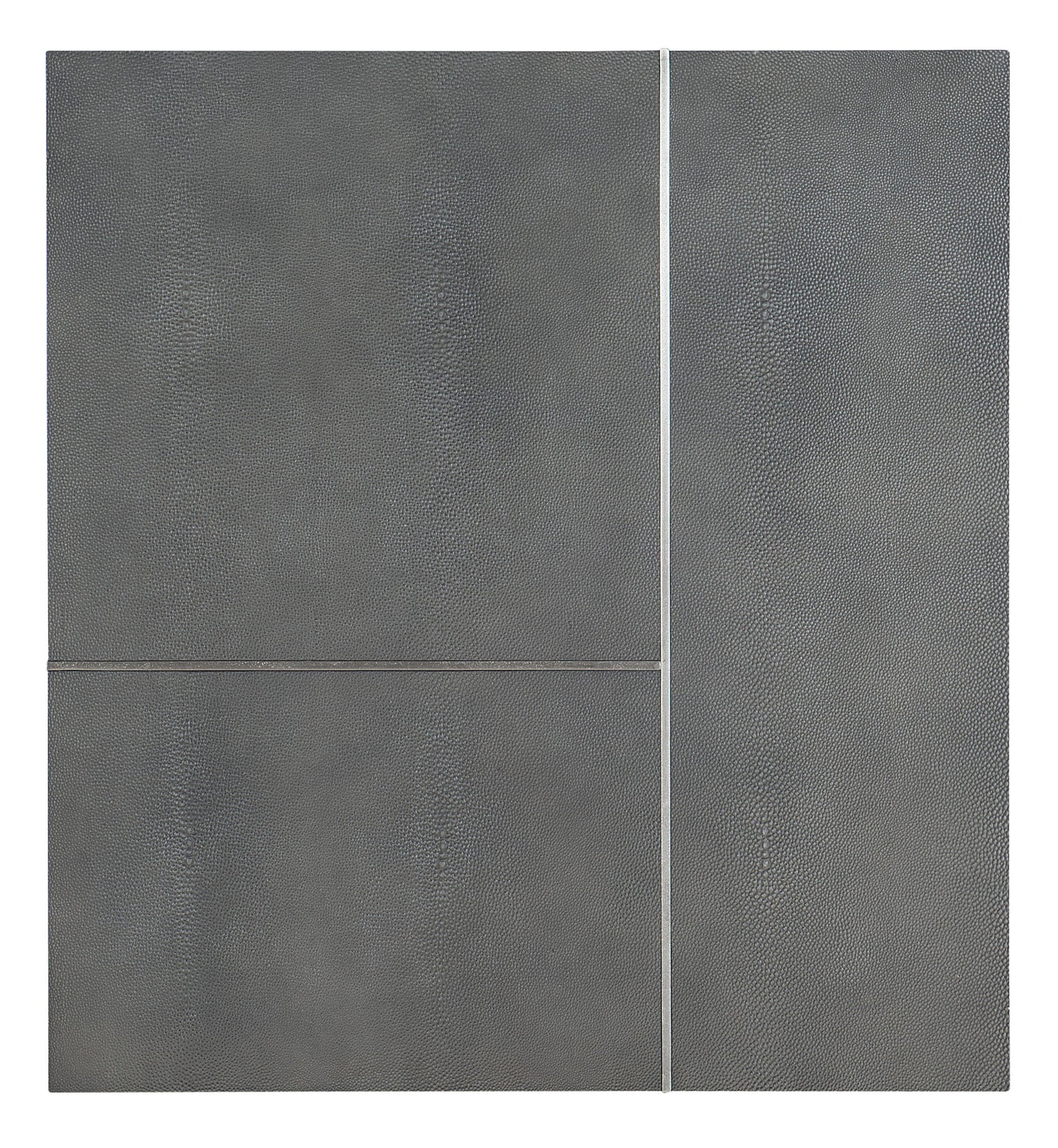 A hand-hammered forged pewter base, stretcher and inlay and a faux Shagreen-wrapped top come together to create an eclectic, mixed-media piece in the Chapman End Table, inspired by downtown urban living.