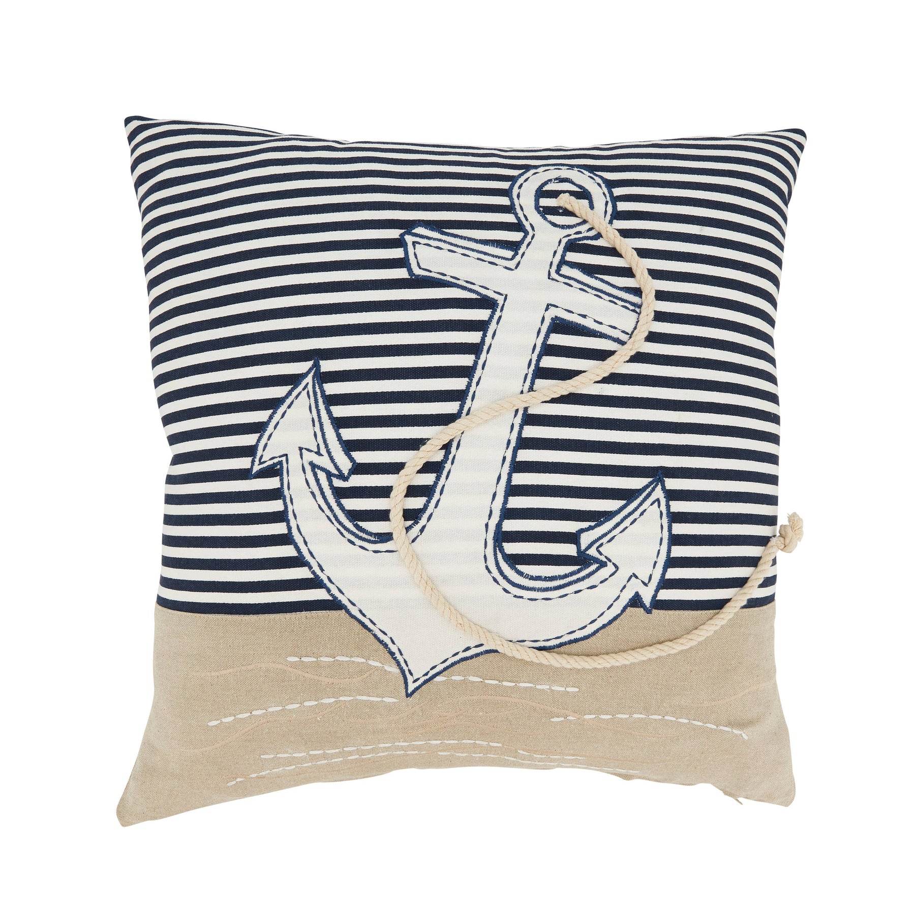 Coastal Embroidered Anchor Pillow: Multi / Poly Filled / 18"