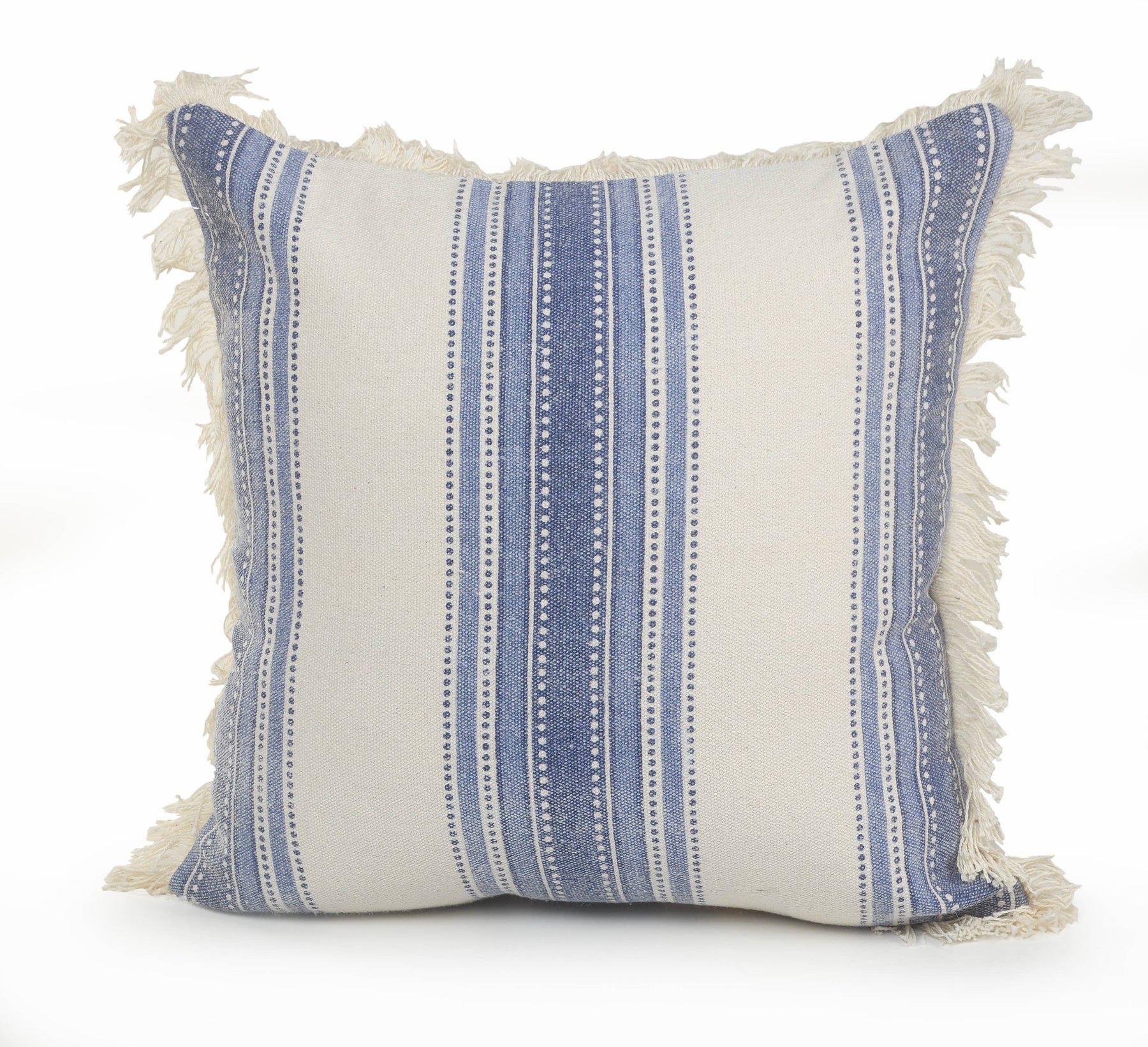 Designed to thrill, our pillow collection will add intricate mastery and eye pleasing designs to any room. This particular addition dwells perfectly on a comfy couch, bed, or bench. This pillow is a wonderful navy, blue, and ivory addition to a coastal or nautical collection. The textured edge is just another benefit to this beautiful creation. Handcrafted with the customer in mind, there is no compromise of comfort and style with the pillow line we create. 100% Cotton . Flat weave Closure: Zipper. Depth: 7