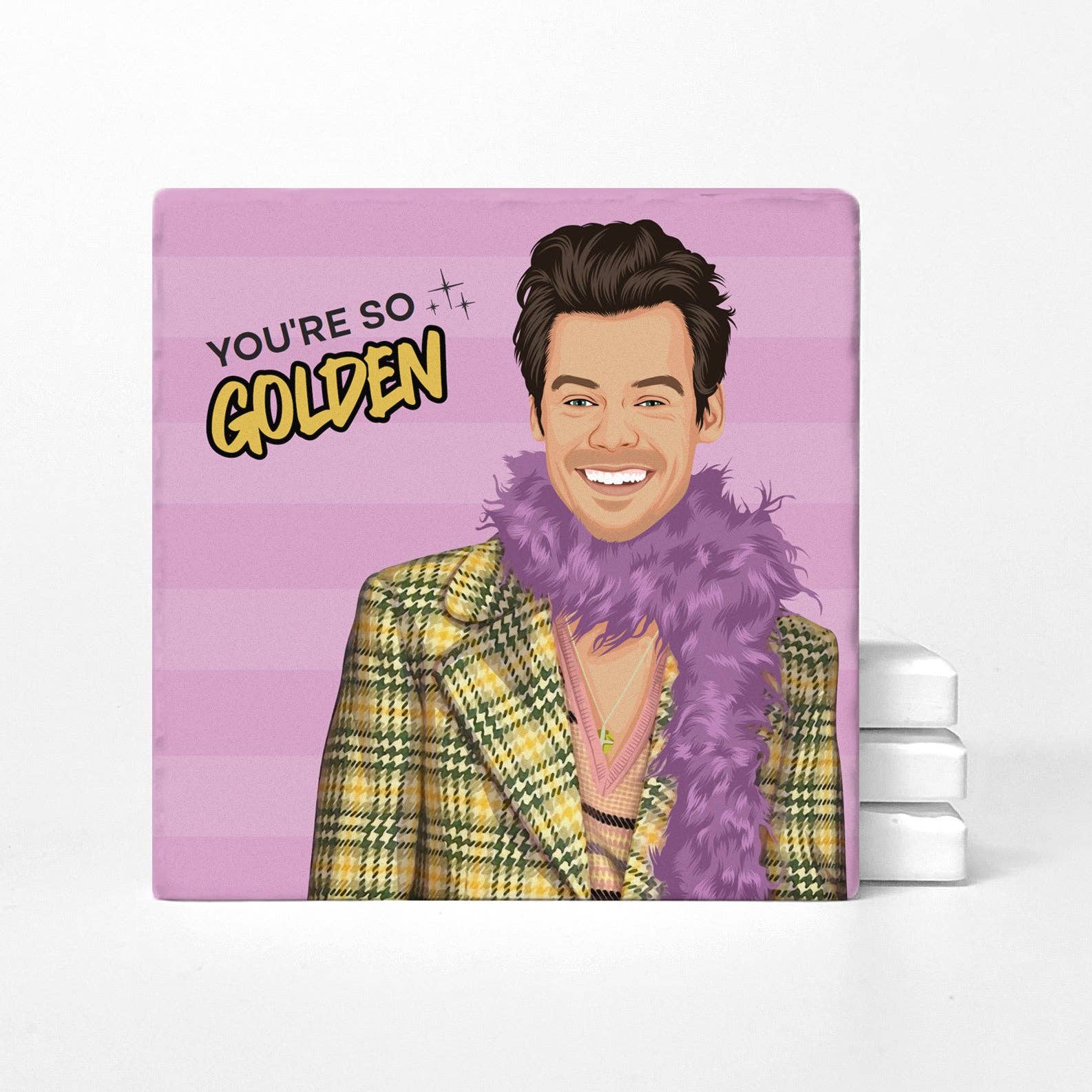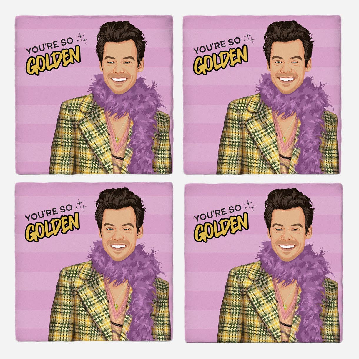 Check out our Harry Styles coaster set: "You're so golden," and so is this coaster! Harry’s bringing all the style, glam and sass to your table. These coasters are like Harry's music—effortlessly cool and impossible not to adore. Sip, smile, and embrace the golden vibe!