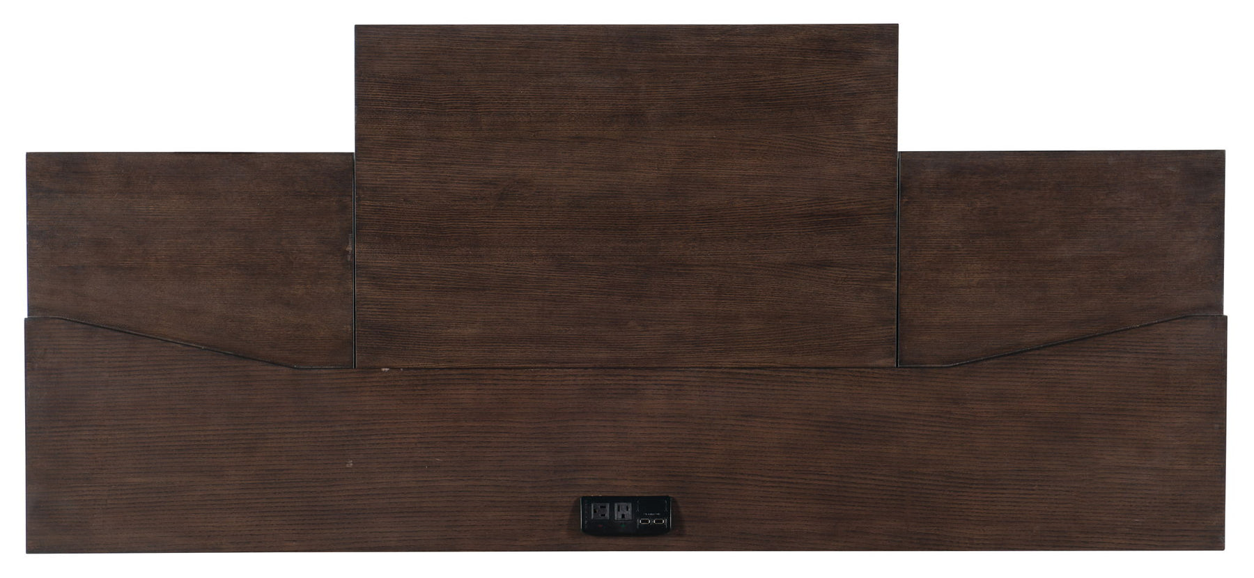 Add stylish work-from-home bandwidth to any space with the House Blend Computer Credenza with a sleek combination of the Dark Roast finish over Quartered Ash Veneers, silver metal trim and polished stainless bar pulls. Packed with storage and function, the desk has one door on the right, one adjustable shelf and one pullout adjustable shelf behind the door, along with a ventilated back panel. Five drawers with full extension metal ball bearing slides provide ample storage. The left middle drawer is on full extension metal ball bearing slides. The left bottom drawer is a locking file drawer on full extension metal ball bearing slides. There’s one drop-front drawer for keyboard use and a power supply on top. The desktop area above the center drawer pulls out for added work surface.