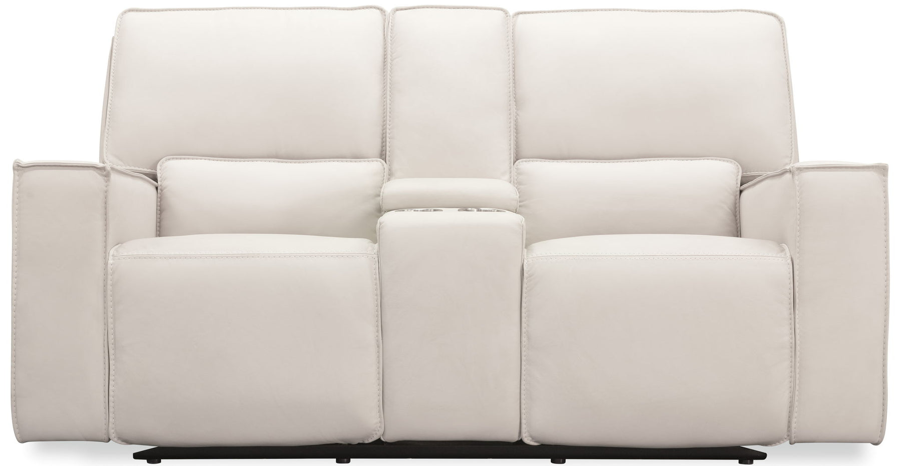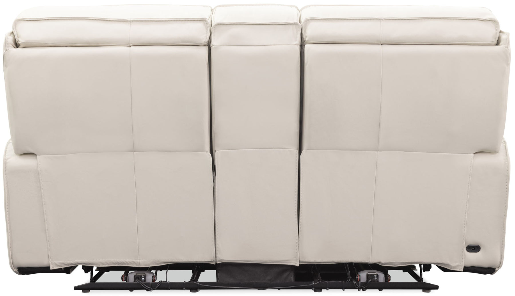 In a relaxed yet refined silhouette, the Miles Zero Gravity Power-Recline Loveseat with Power Headrest features a plush bustle-style back, wide track arm, flange welt trim and hidden storage under the center arm with two metal cupholders. A USB port adds convenient function. Covered in the luxurious semi-aniline top-grain leather, the loveseat is 75 inches wide.