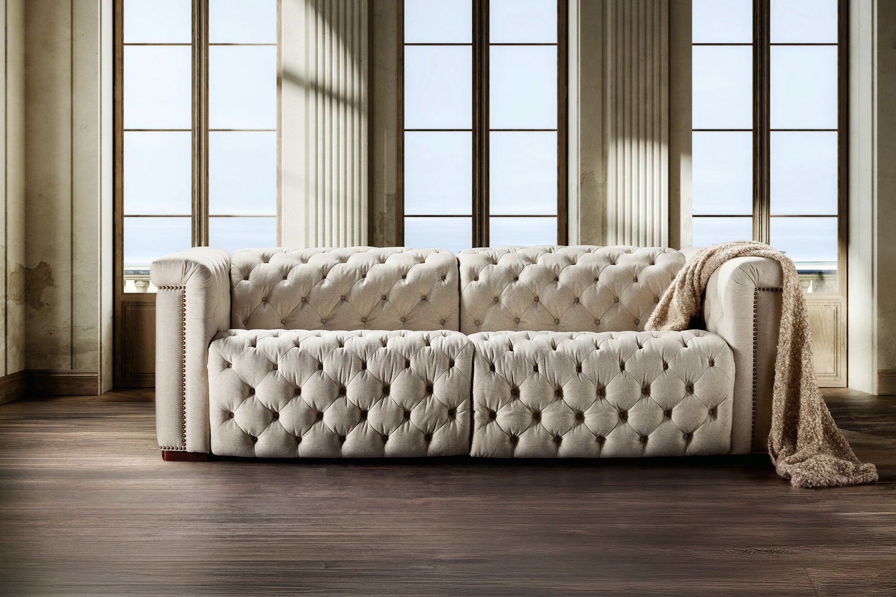 SS - Savion Deux Sofa With Power Recliners And Power Headrests - Beige 89.5"W x 43.0"D x 28.75"H - 316.8 lb