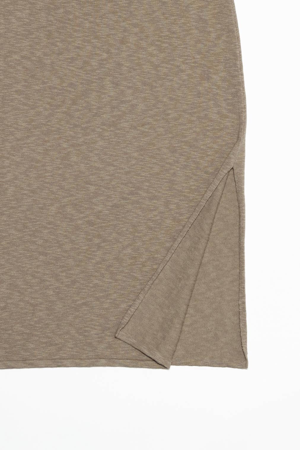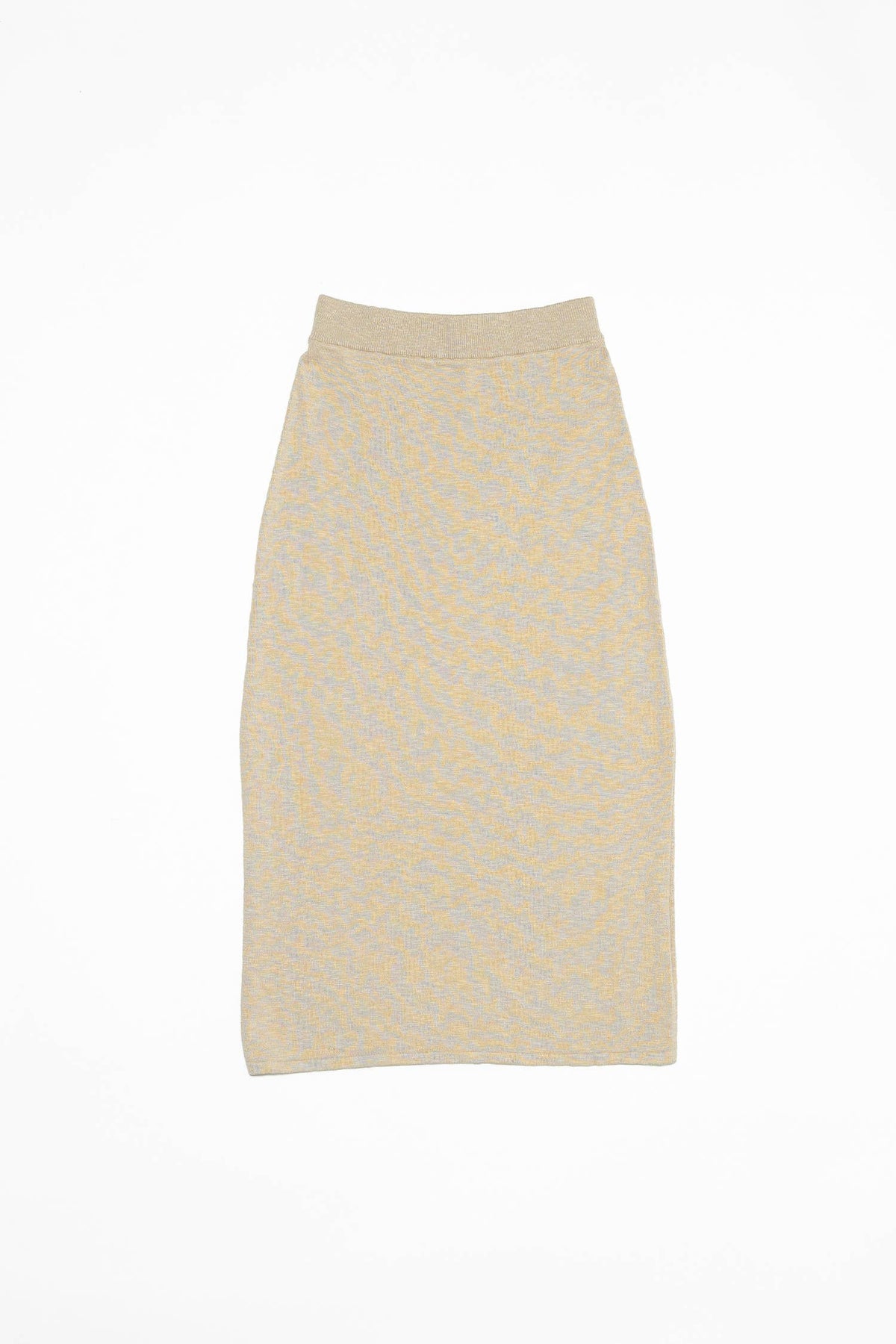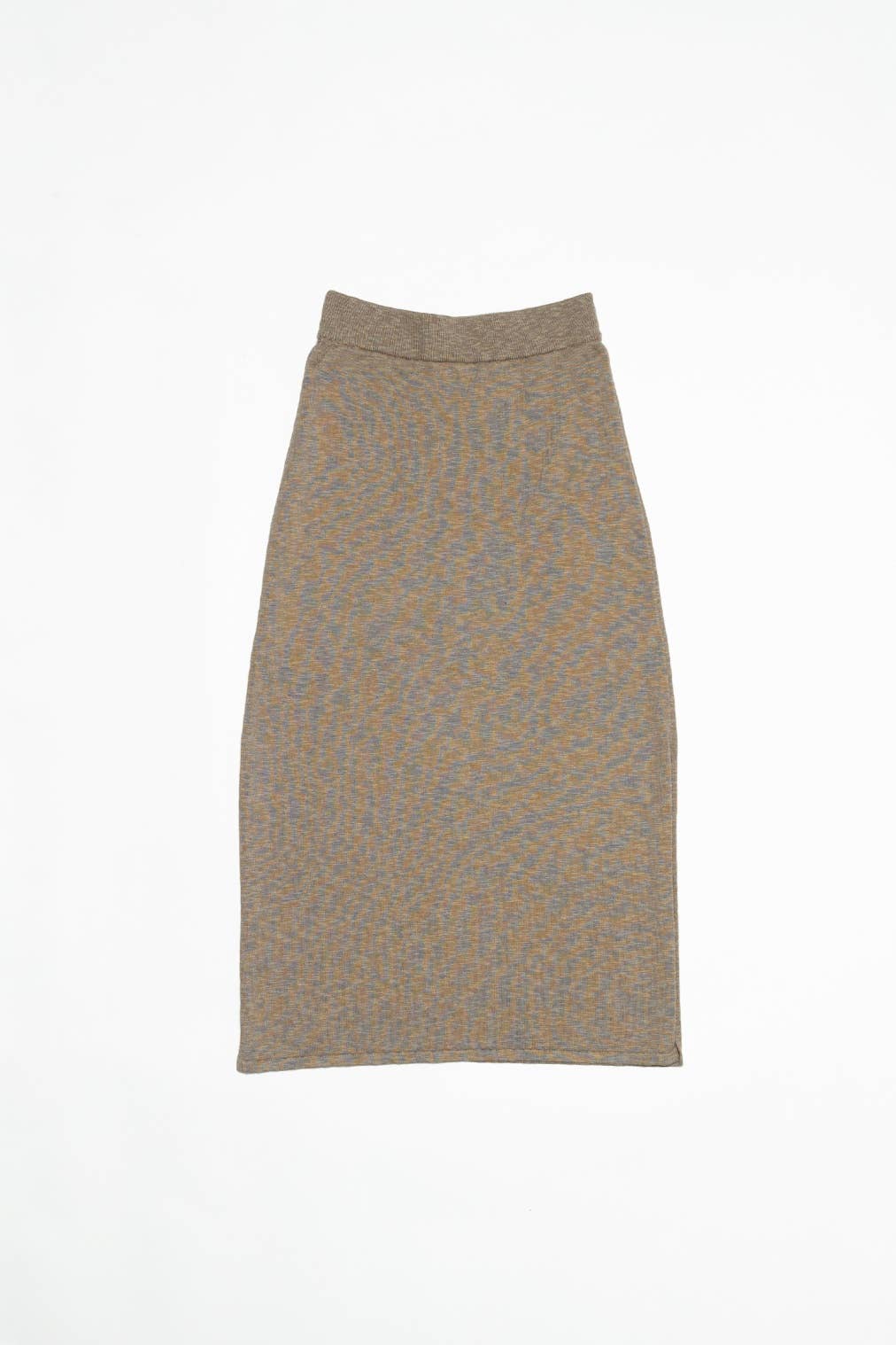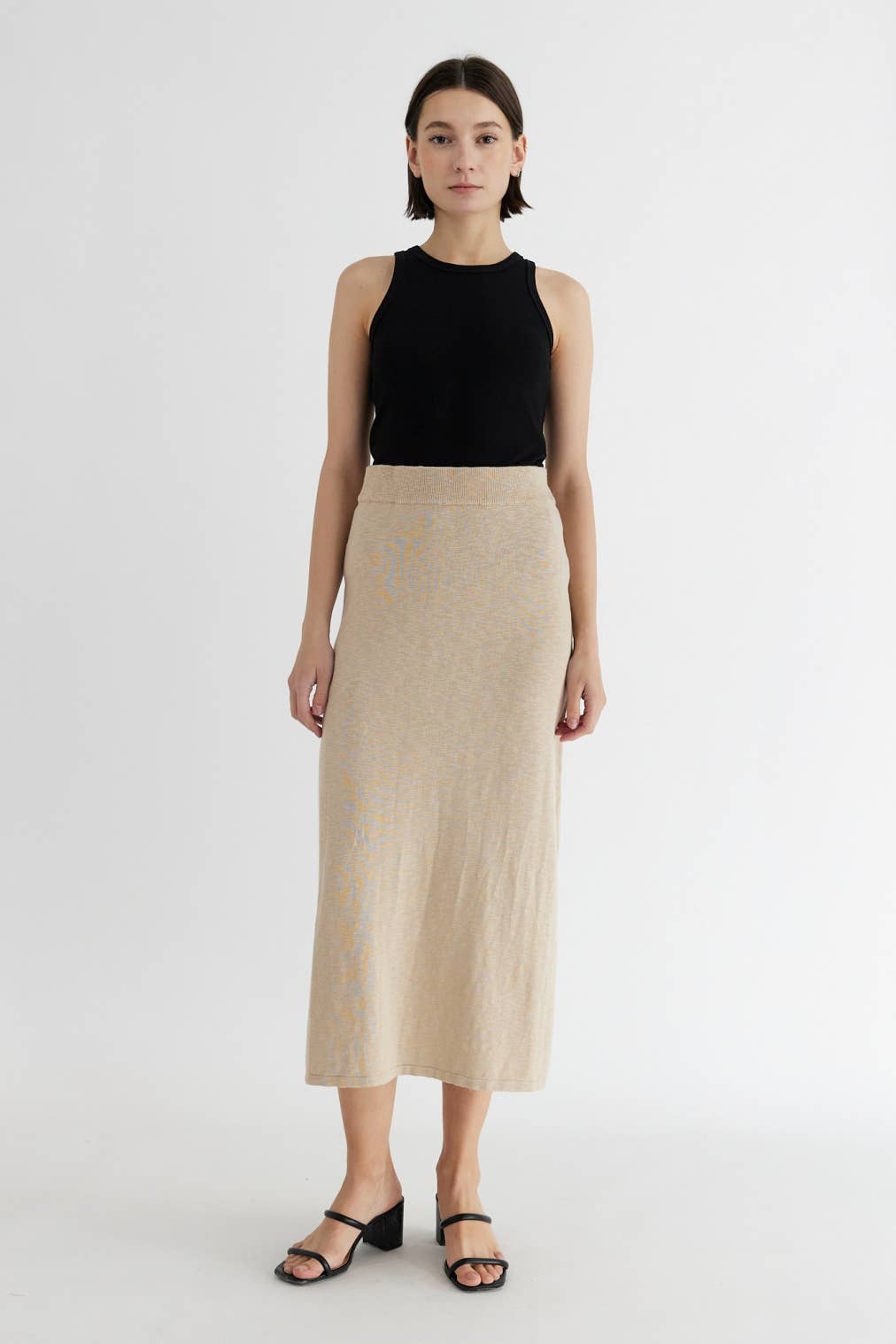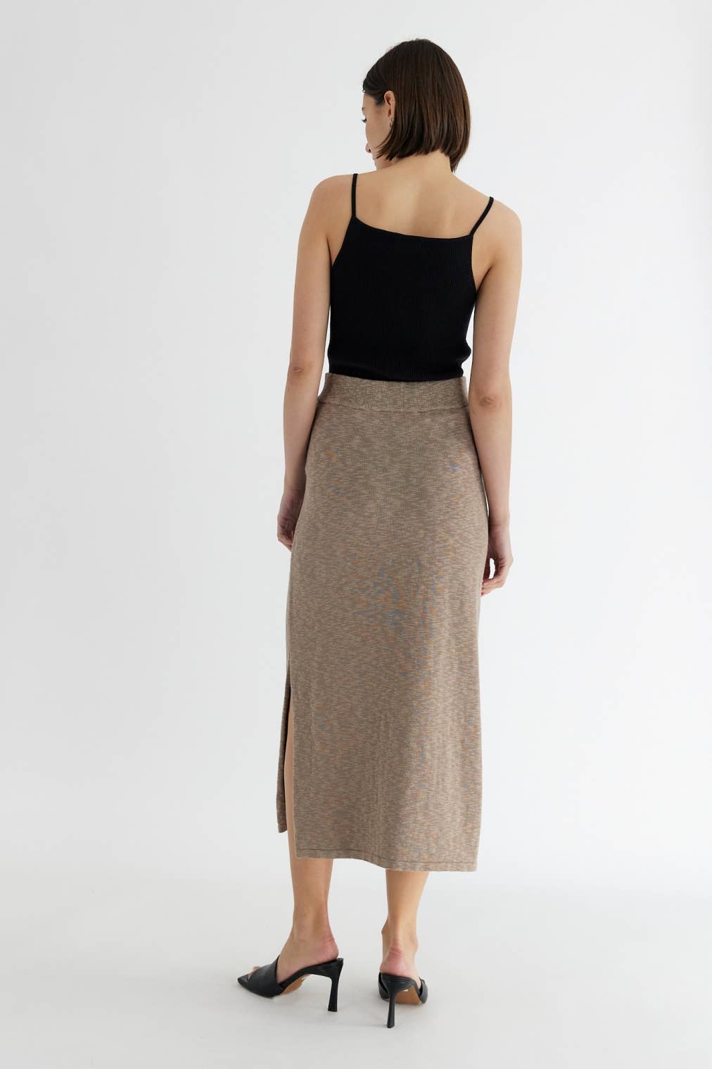The Rosey Skirt is a flattering mid-length skirt to wear throughout the seasons. It's crafted from a heathered slub-knit fabrication with an A-line silhouette and elastic waist band. A staple piece to style with crop tops and heels.