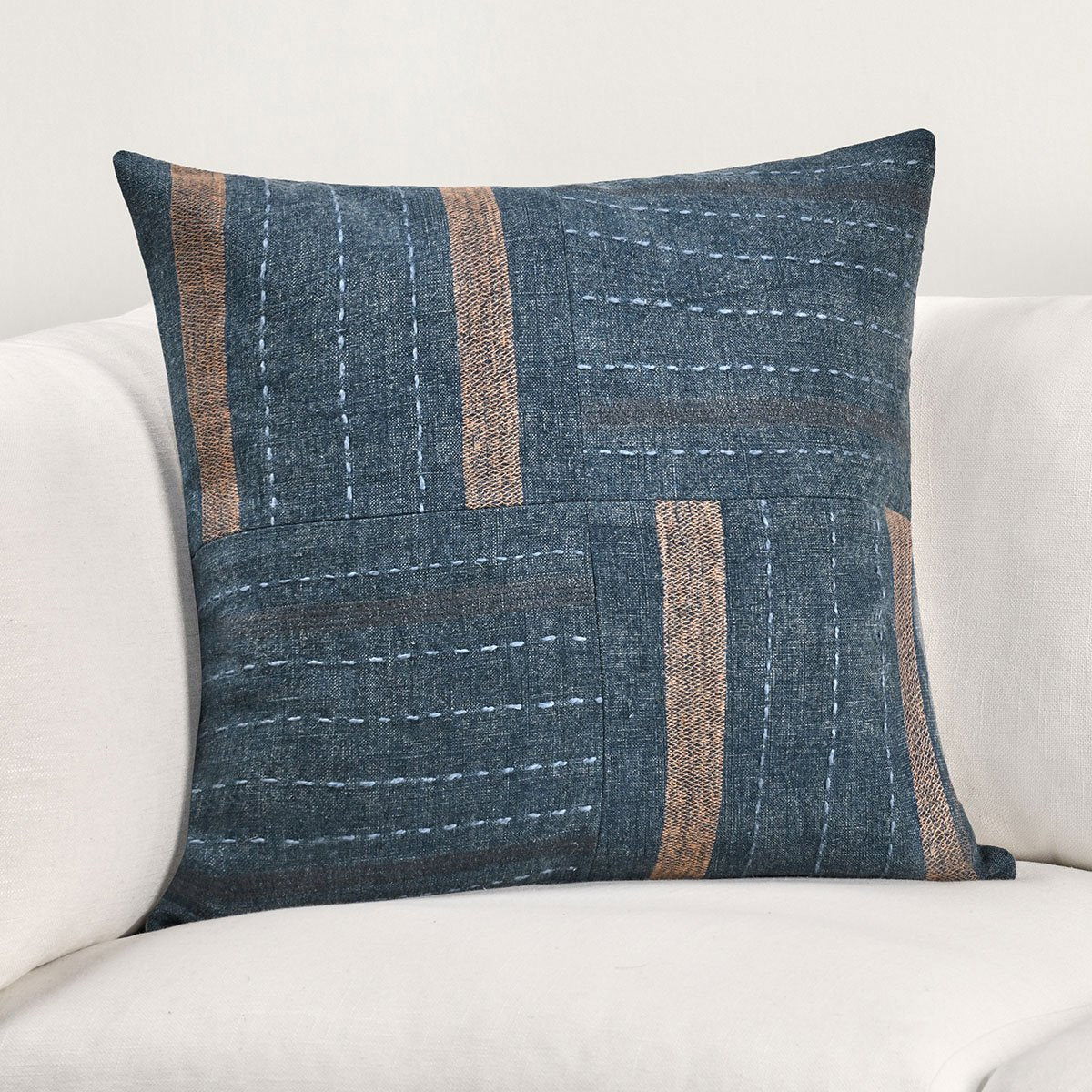 For a casual, vintage feel, this handsome pillow is crafted from dyed and stonewashed Belgian flax linen and hand embroidered for a subtle textural effect. Stonewashing a process where subtle variations in color and texture add to the unique character of each individual pillow.