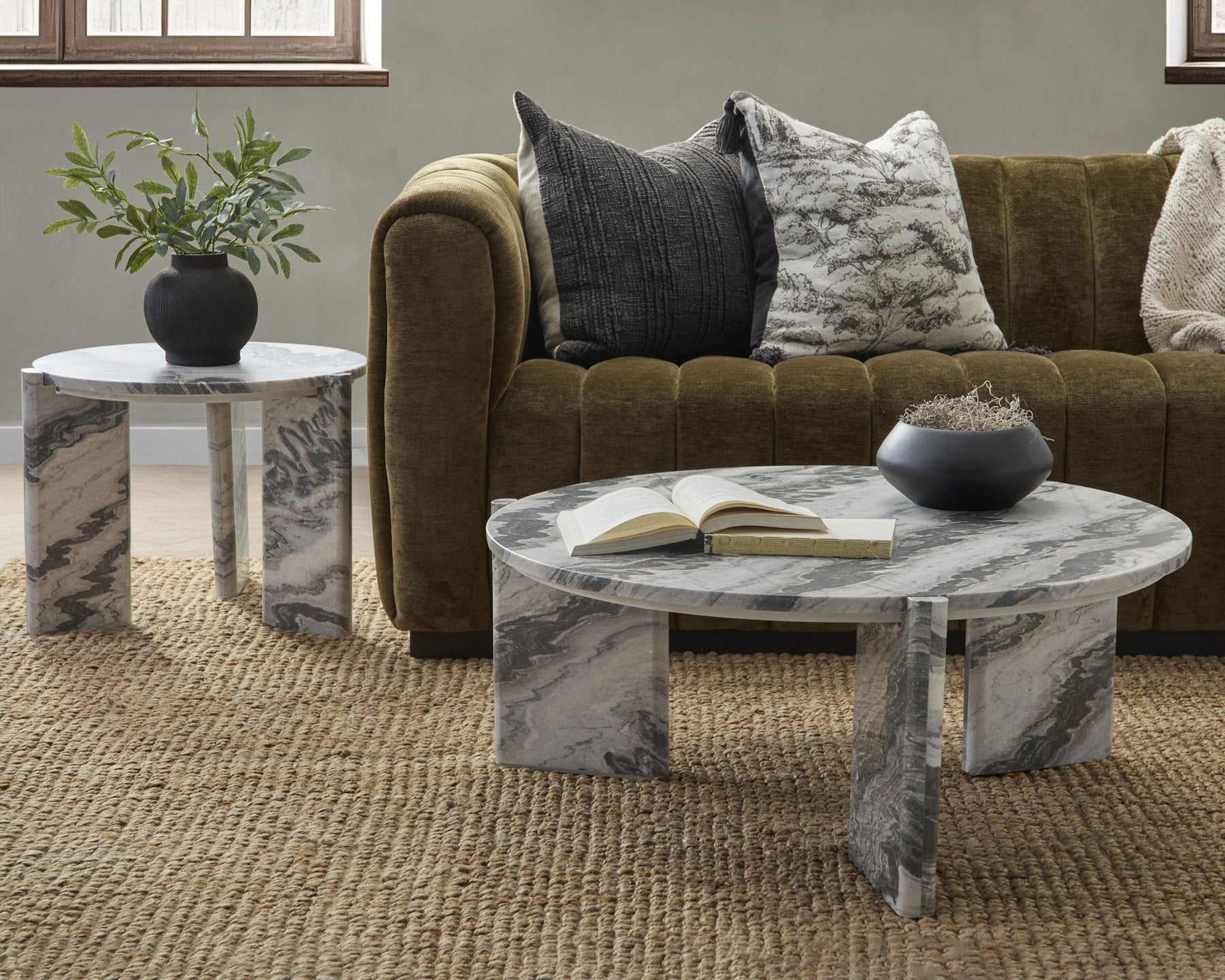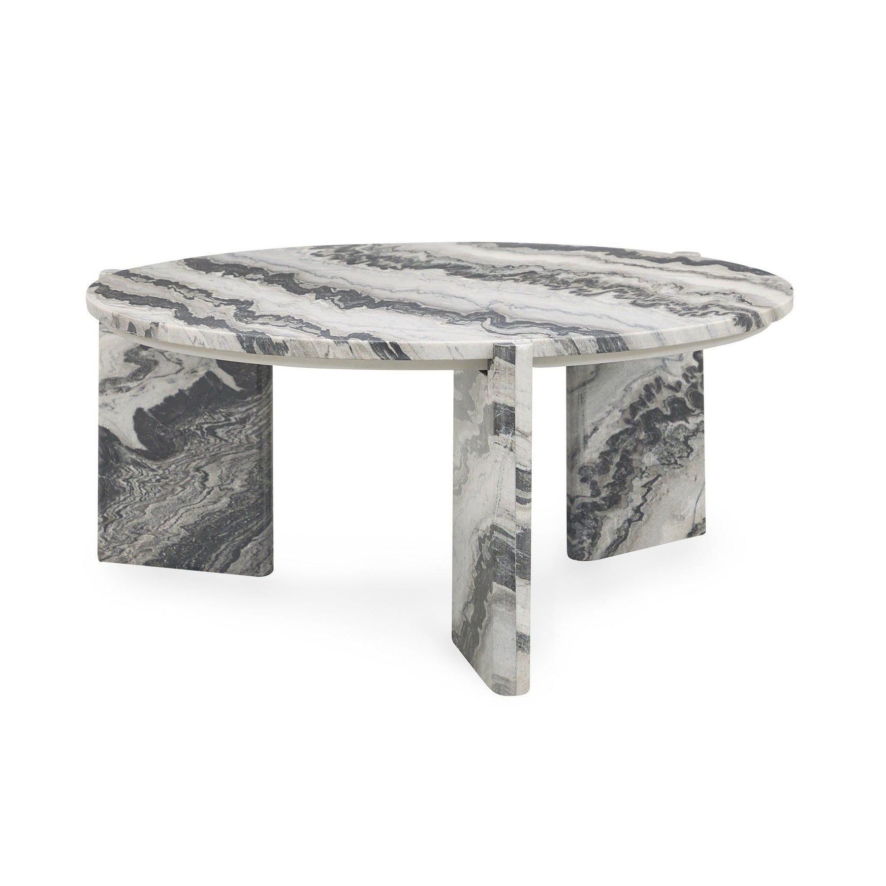 Zora - Marble Round Coffee Table - Gray & White 36.0"W x 36.0"D x 15.0"H - 176.0 lb